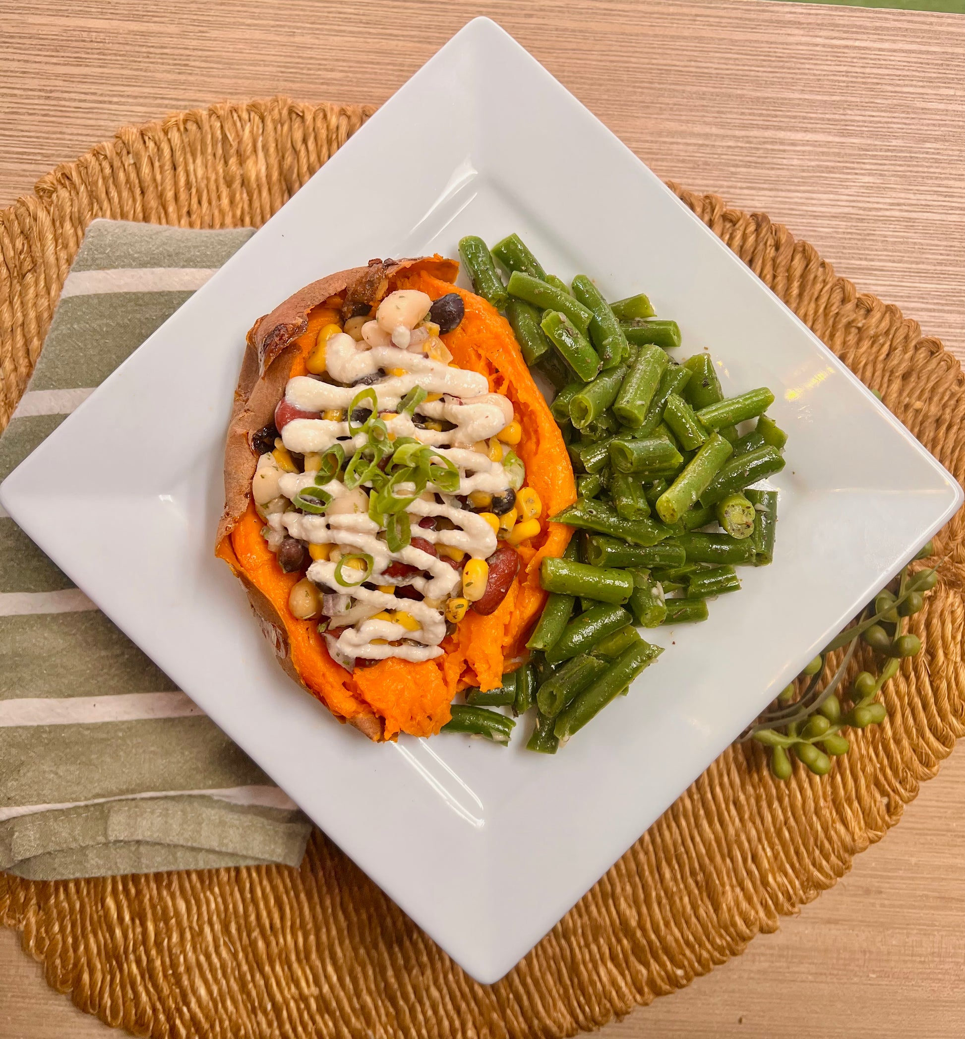 Sweet potato, scallions, black beans, corn,