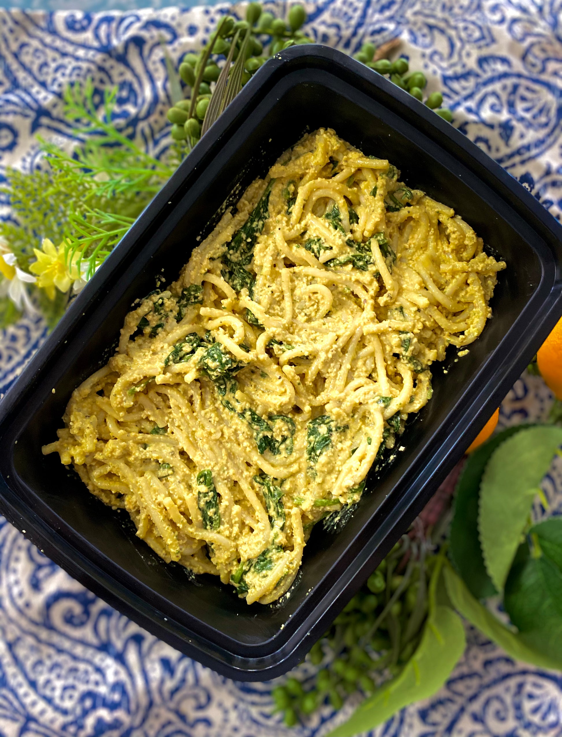 Creamy Cashew Alfredo with sautéed spinach (Vegan)